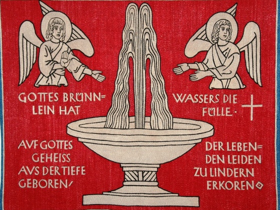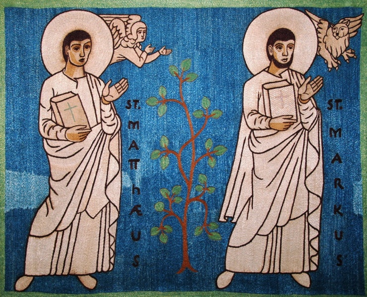 Dann zeigt das Triptychon also, geschaffen aus Material, aus dem auch unser Kirchengebäude entstand, einen Blick in die biblische Urgeschichte, auf die Erschaffung des Menschen, der sich aus der Erde erhebt, zum Individuum wird, aufrecht geht, sich auf den Weg macht, und mit Gott in Kontakt bleibt.