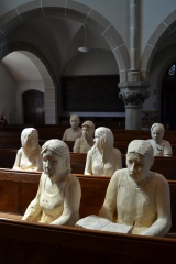 Seit 5. Juli habe ich hier Einiges gesehen. So lange waren wir jetzt hier. Es sind ziemlich viele Menschen in die Kirche gekommen, um uns zu sehen, aber auch, um durch die Kirche zu gehen, sich hinzusetzen, sich zu besinnen. Manchen bin ich zunächst gar nicht aufgefallen. Manche haben gerne neben mir gesessen, vor allem bei den Gottesdiensten. Die vorne Stehenden aus unserer Besuchsgruppe wurden manchmal zur Seite gerückt: bei Trauungen und großen Konzerten. Ich konnte einfach sitzen bleiben.